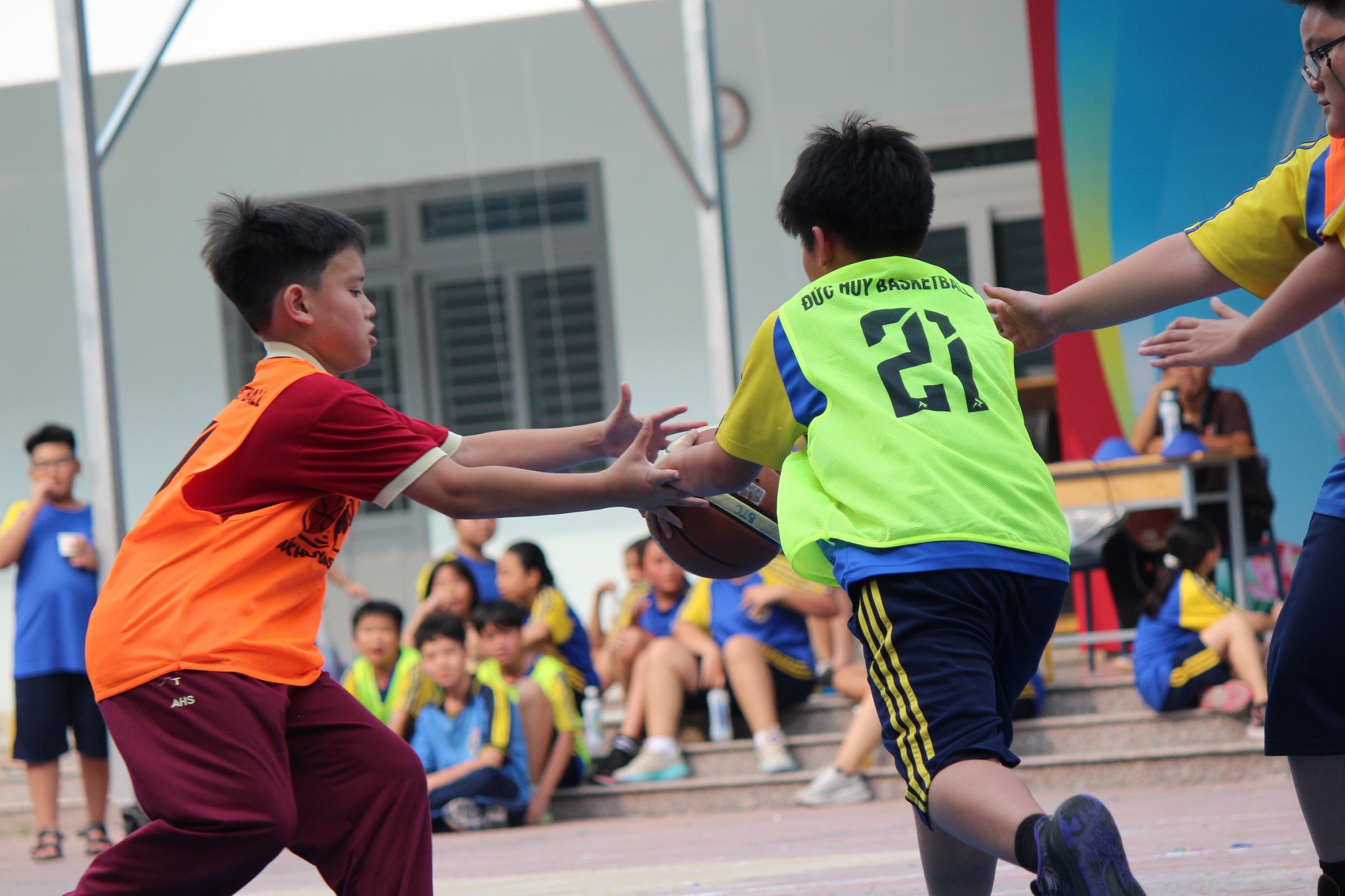 Trận đấu bóng rổ giữa chi đội 6A1 và chi đội 6A6 đã diễn ra trong không khí sôi nổi và hào hứng, thu hút sự cổ vũ nhiệt tình của đông đảo học sinh.
