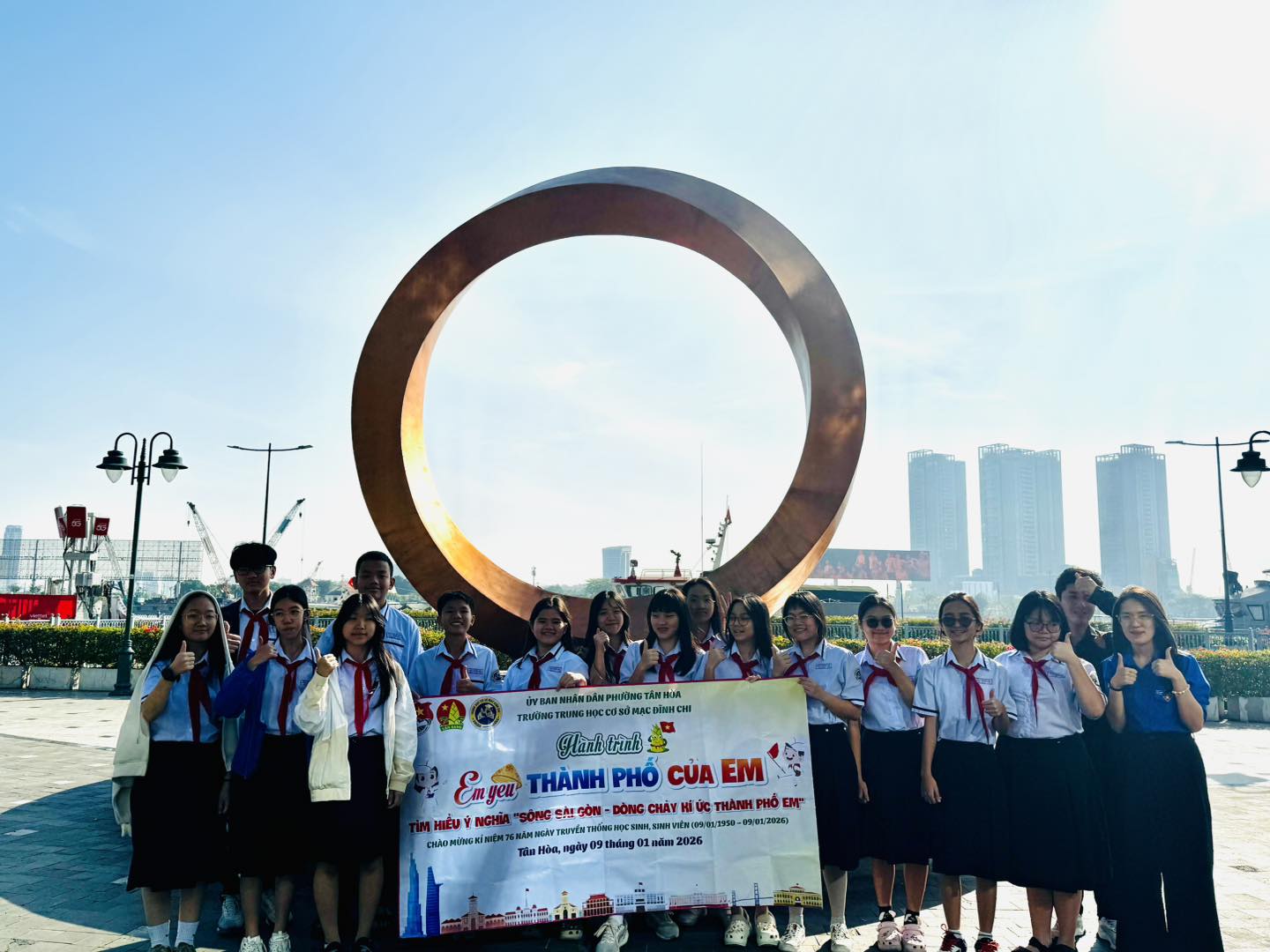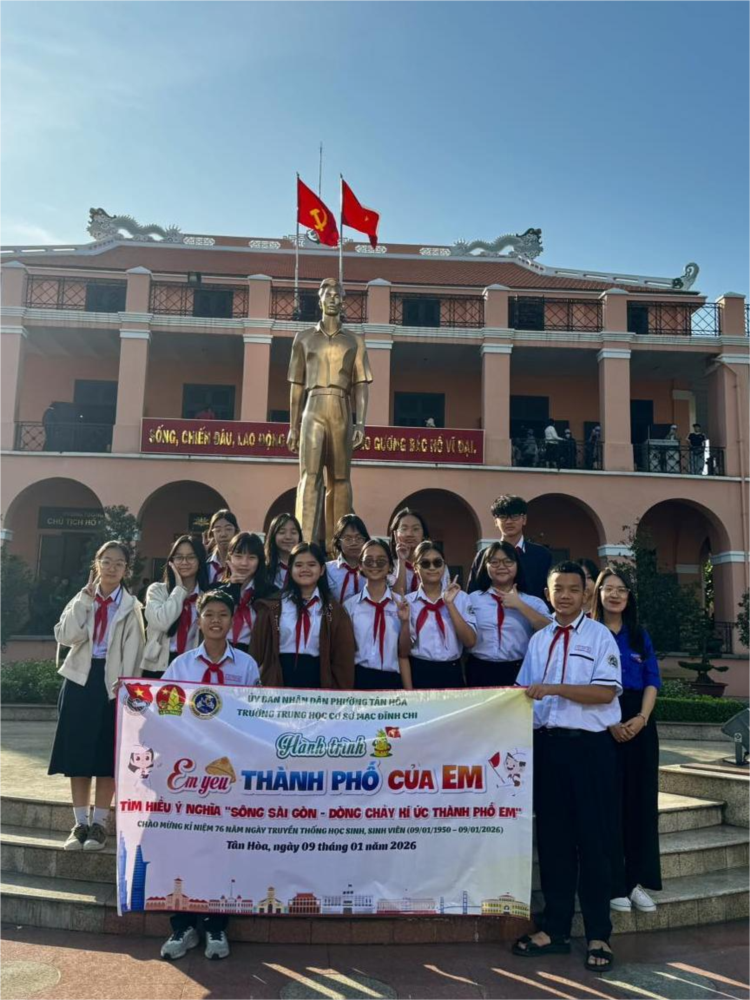 Ngày 09/01/2026, trong không khí thi đua sôi nổi chào mừng 76 năm Ngày truyền thống Học sinh – Sinh viên Việt Nam, đồng thời hưởng ứng chuỗi hoạt động cao điểm Chương trình “Xuân tình nguyện”, đội viên khối 8 – Trường THCS Mạc Đĩnh Chi đã tham gia hành trình học tập trải nghiệm với chủ đề “Em yêu Thành phố của em”, gắn với hoạt động tìm hiểu “Sông Sài Gòn – dòng chảy ký ức thành phố em”.
