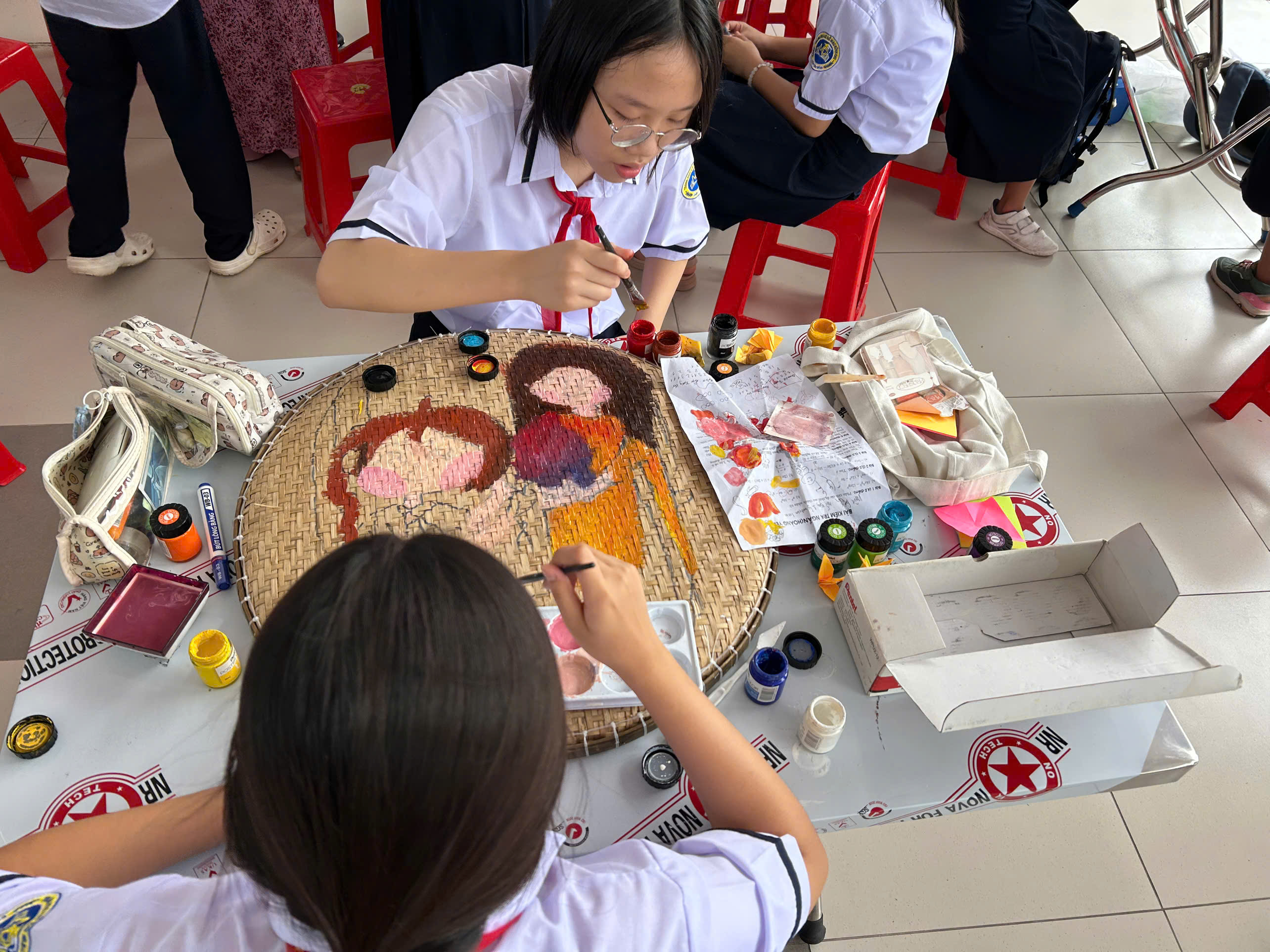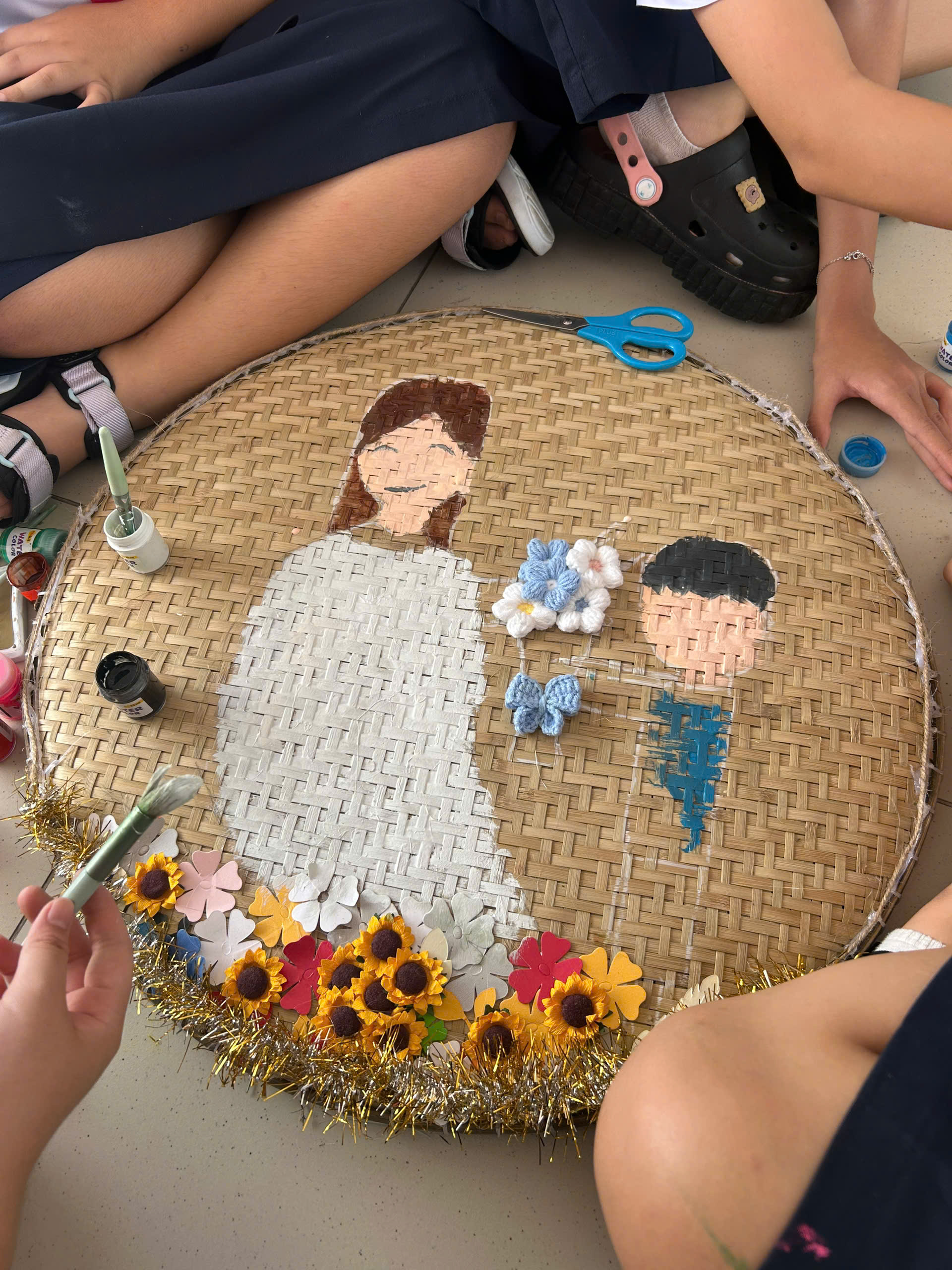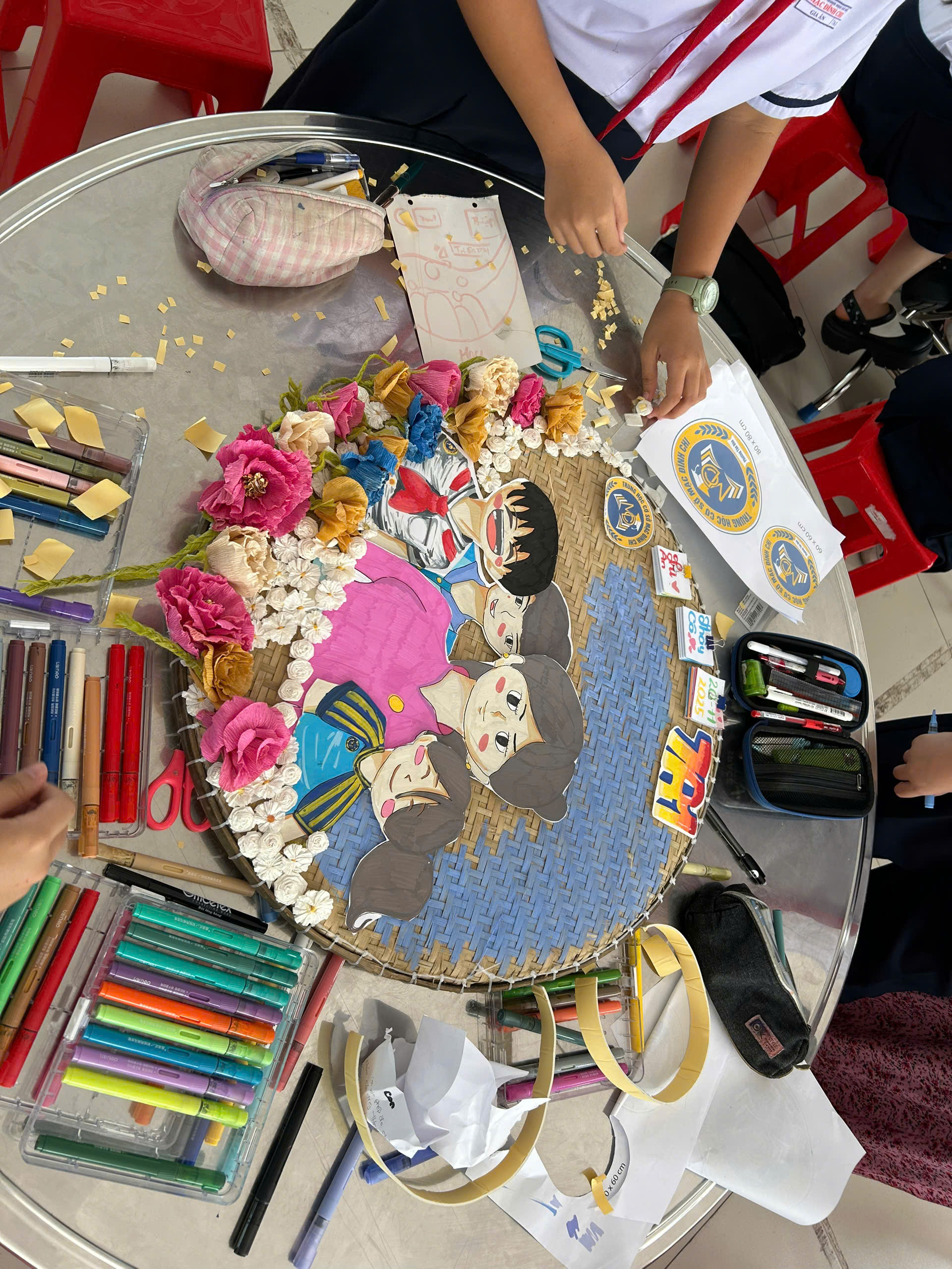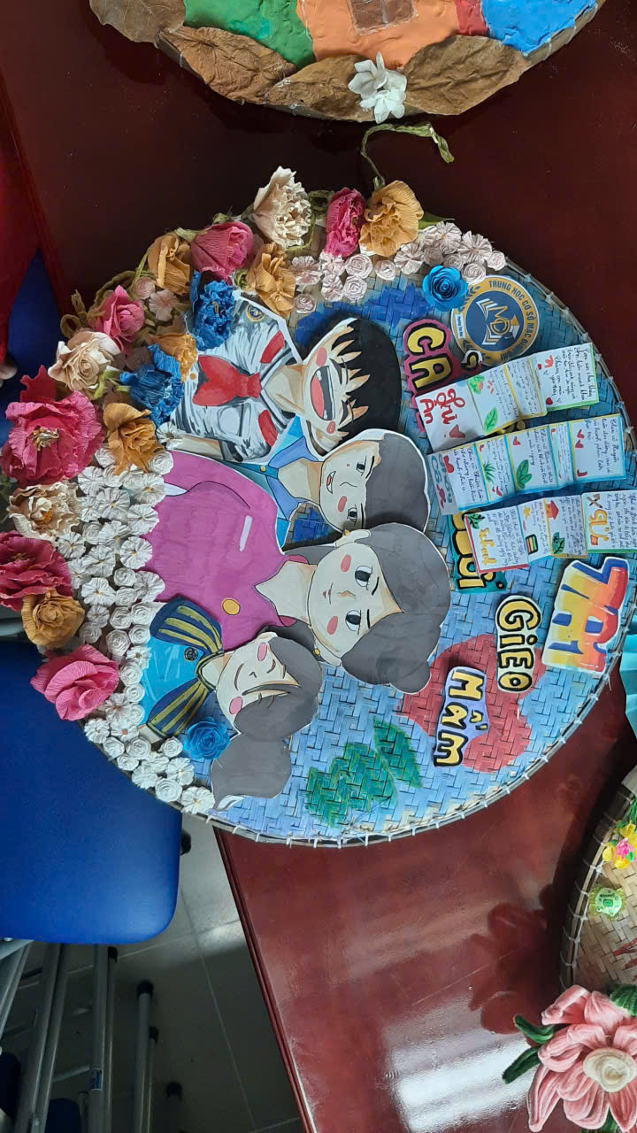 🌻 Từ những chiếc mẹt tre mộc mạc, giản dị, qua đôi bàn tay khéo léo và tâm hồn bay bổng của các em học sinh, đã trở thành những tác phẩm nghệ thuật độc đáo. 🎨 Mỗi bức họa là một câu chuyện nhỏ – là hình ảnh người thầy tận tụy, người cô dịu dàng, là những người bạn cùng nhau học tập, là những đóa hoa tri ân, là mái trường thân thương in dấu kỷ niệm. 🖌️