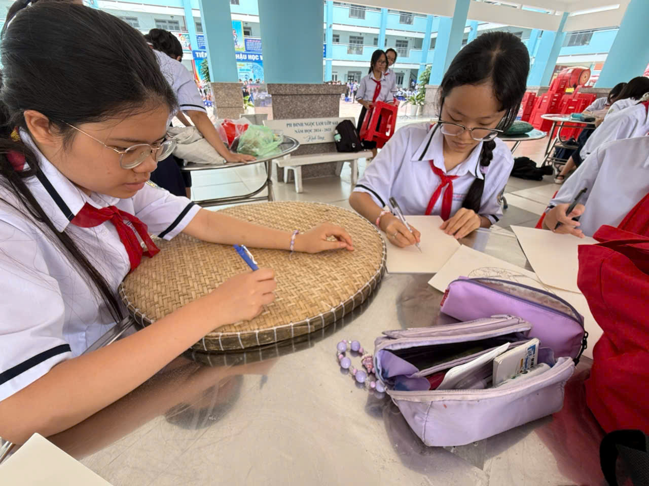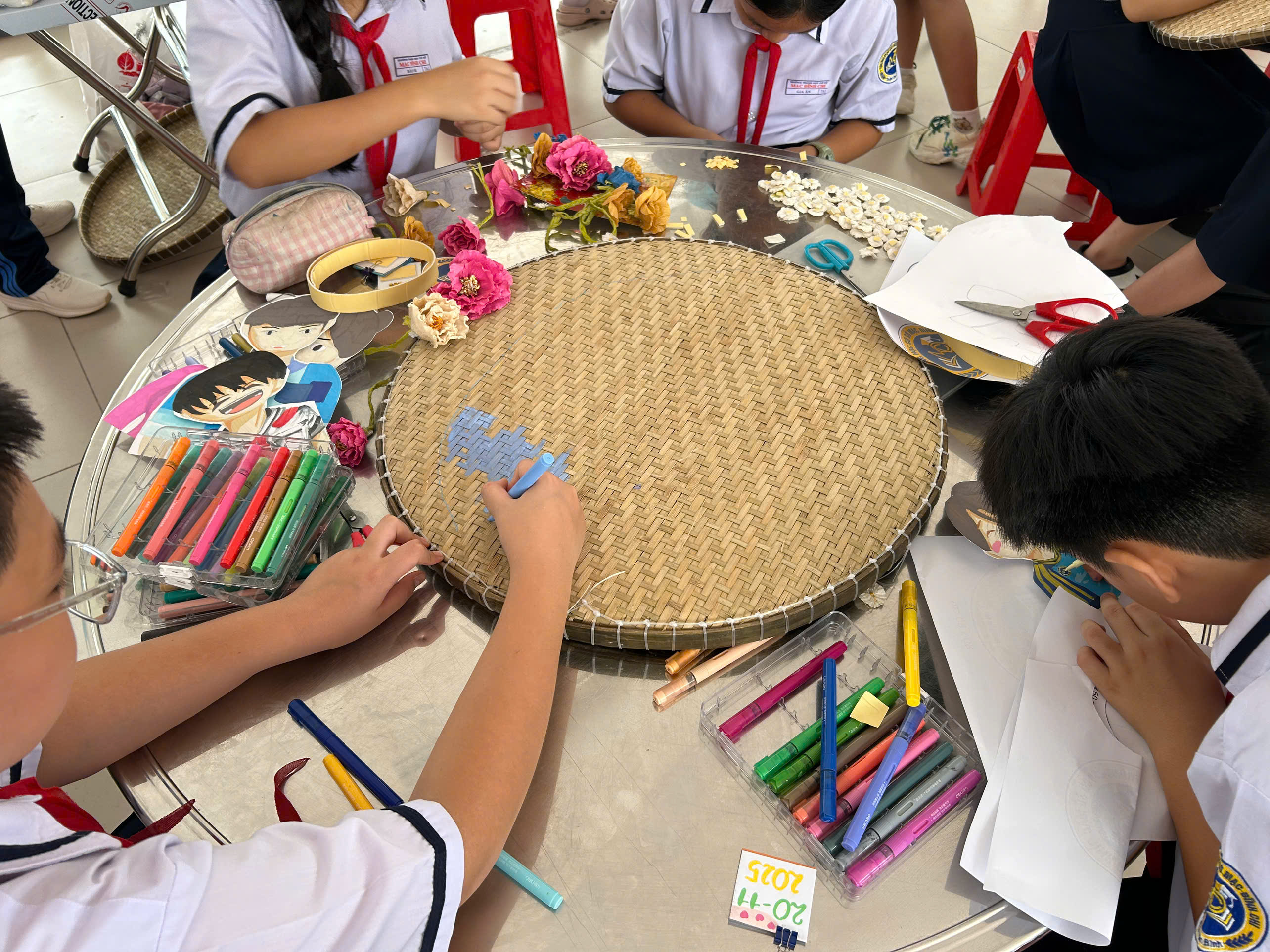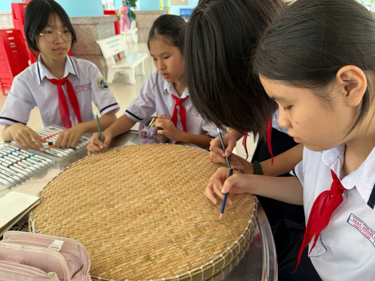 🌻 Từ những chiếc mẹt tre mộc mạc, giản dị, qua đôi bàn tay khéo léo và tâm hồn bay bổng của các em học sinh, đã trở thành những tác phẩm nghệ thuật độc đáo. 🎨 Mỗi bức họa là một câu chuyện nhỏ – là hình ảnh người thầy tận tụy, người cô dịu dàng, là những người bạn cùng nhau học tập, là những đóa hoa tri ân, là mái trường thân thương in dấu kỷ niệm. 🖌️
