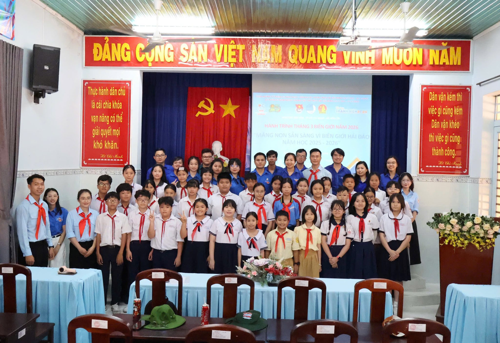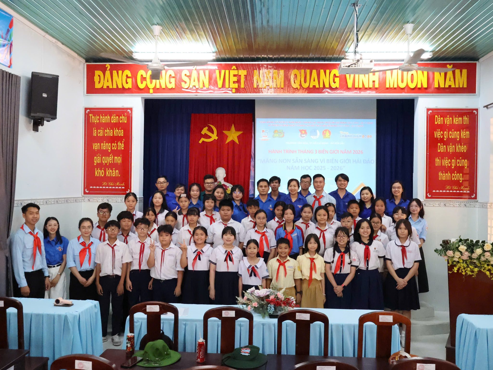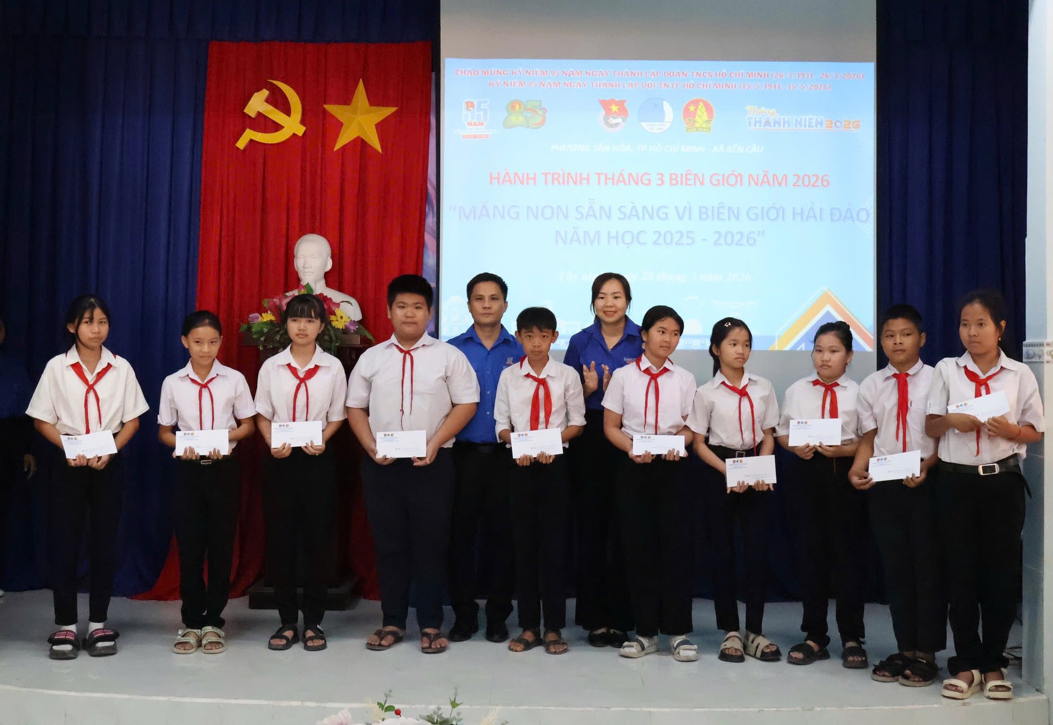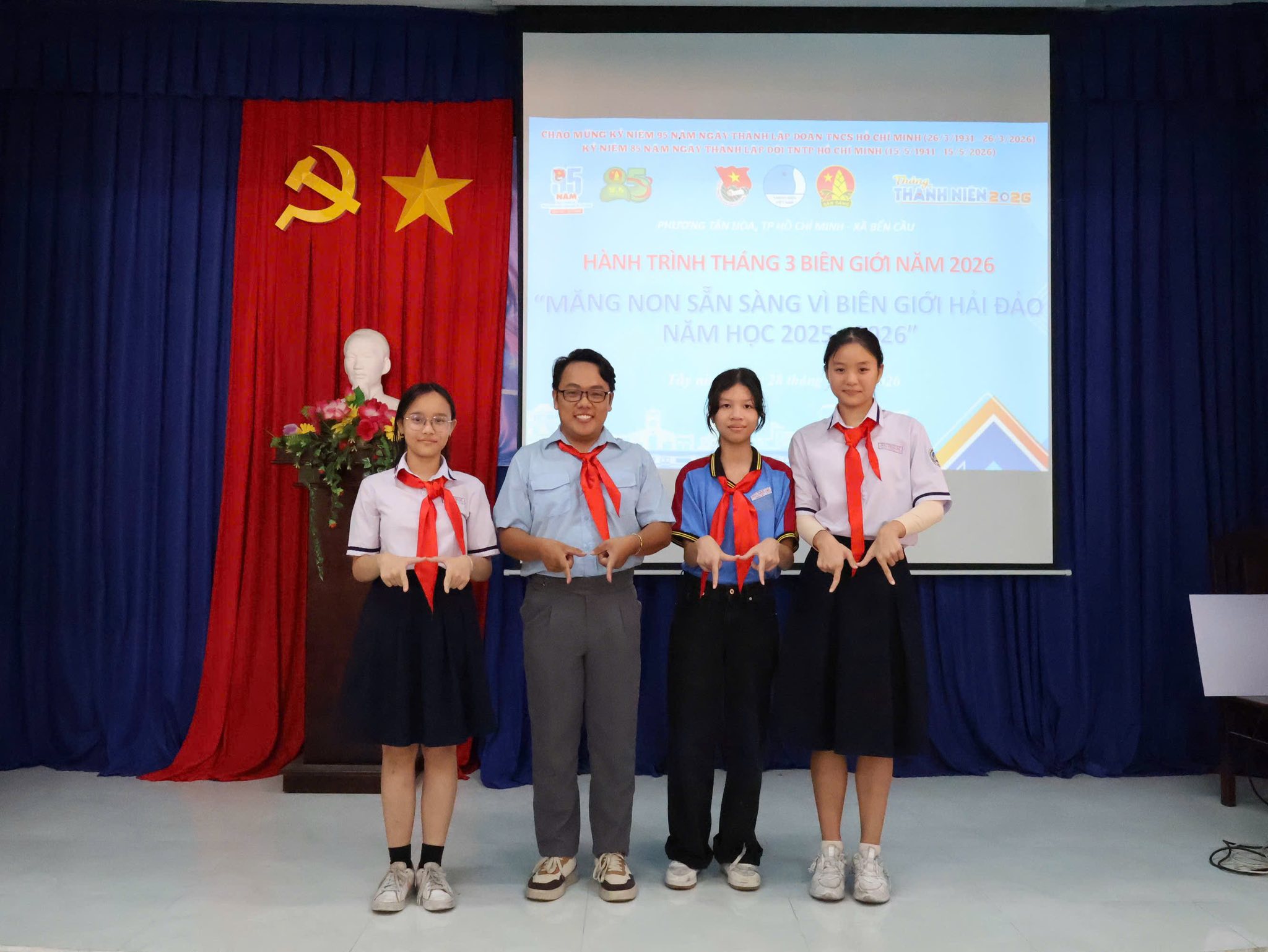 Nhằm thiết thực chào mừng Tháng Thanh niên năm 2026, đồng thời giáo dục truyền thống yêu nước, tinh thần trách nhiệm với Tổ quốc cho đội viên, thiếu nhi, ngày 28/03/2026, Liên đội đã phối hợp cùng Đoàn Phường và Hội đồng Đội Phường Tân Hòa tổ chức chương trình “Tháng 03 Biên giới” với chủ đề: “Măng non sẵn sàng vì biên giới Biển, đảo” tại tỉnh Tây Ninh.