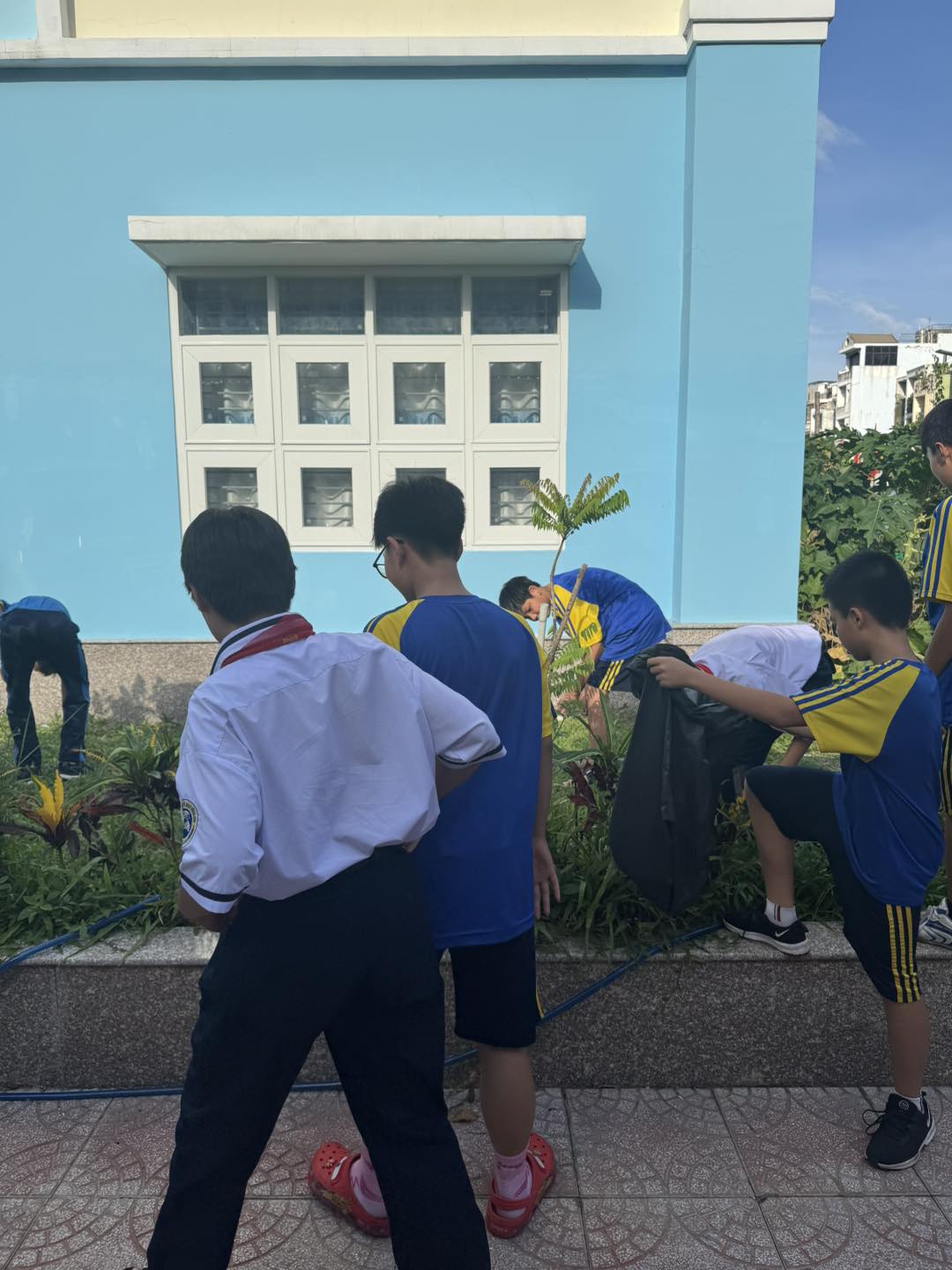 Những chiếc lá vàng được gom lại, những góc sân được làm sạch, những bồn hoa được chăm chút – tất cả đều là minh chứng cho tinh thần xung kích, chung tay vì một môi trường học tập trong lành, đẹp mắt.