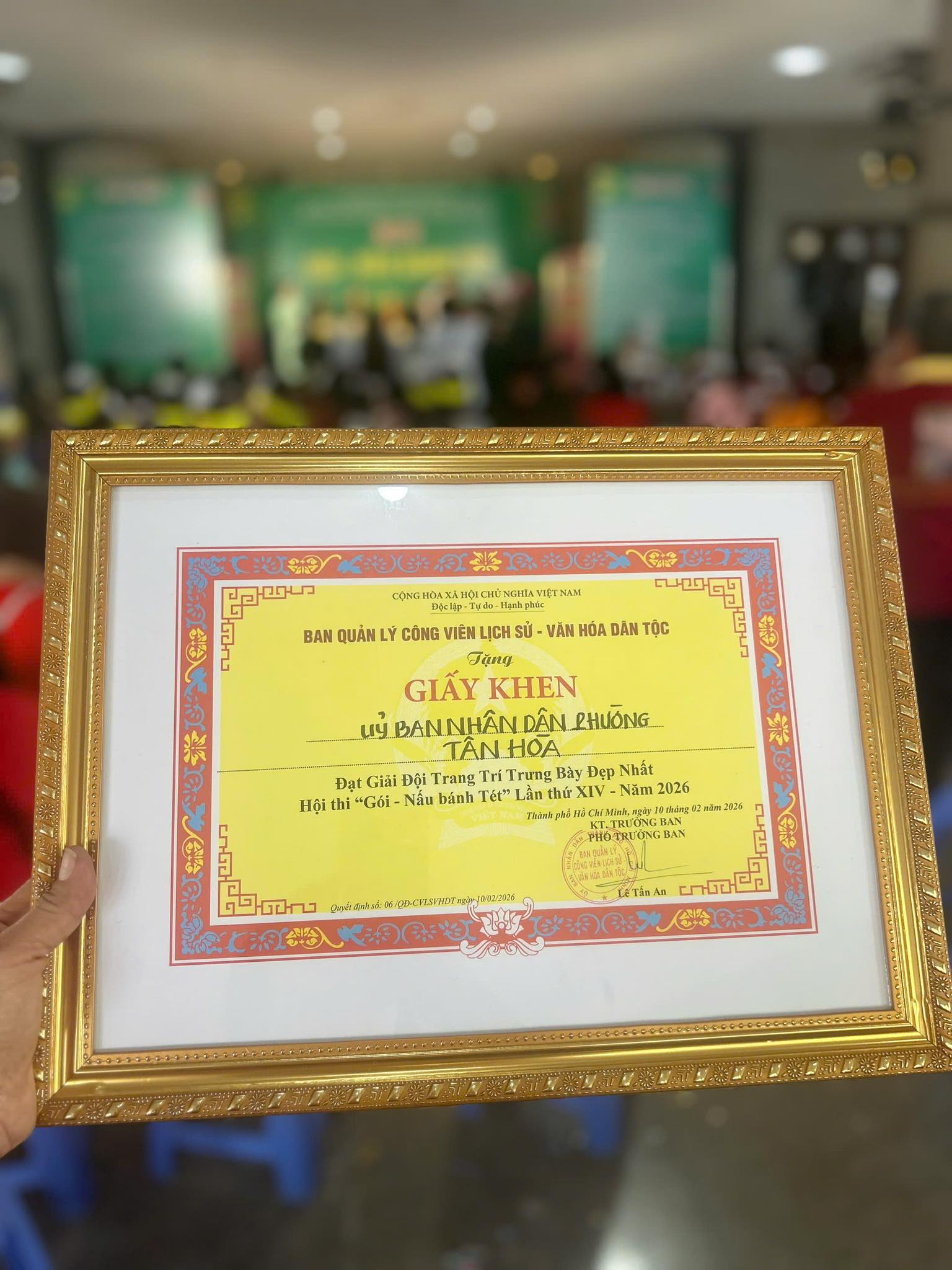Phường Tân Hòa xuất sắc đạt Giải Nhì Bảng A 🥈 và Giải Đội Trang Trí – Trưng Bày Đẹp Nhất 🌟 tại Hội thi “GÓI – NẤU BÁNH TÉT” lần thứ XIV của Thành phố!
