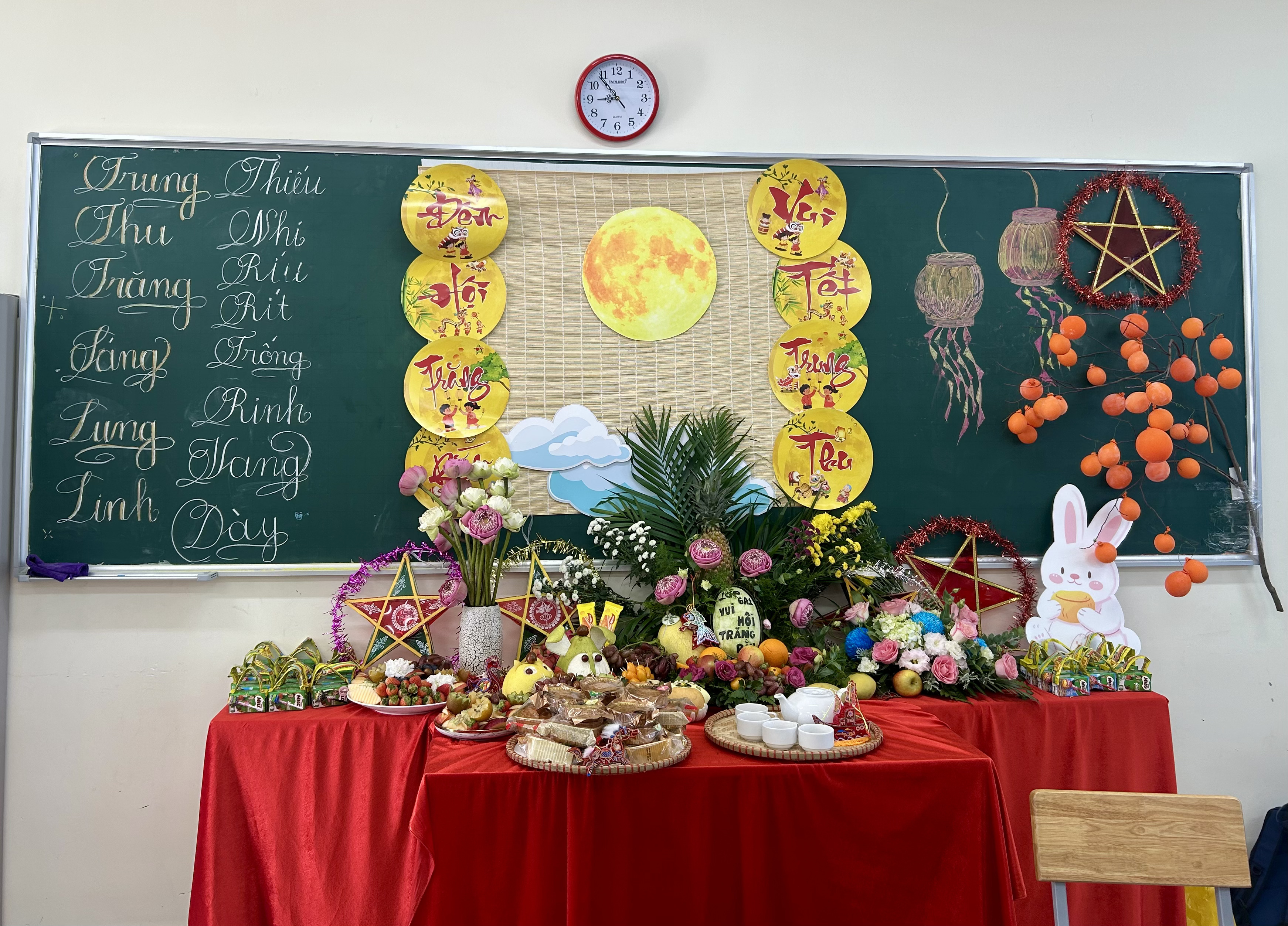 Sau phần thi, cả lớp cùng nhau “phá cỗ trăng rằm” – giây phút rộn vang tiếng cười, khi những ly trà sữa, miếng bánh, trái cây được chuyền tay trong tình bạn thân thương. Đó không chỉ là buổi tiệc nhỏ, mà còn là bữa tiệc của yêu thương và kỷ niệm, ghi dấu một mùa trăng không thể nào quên trong tuổi học trò.