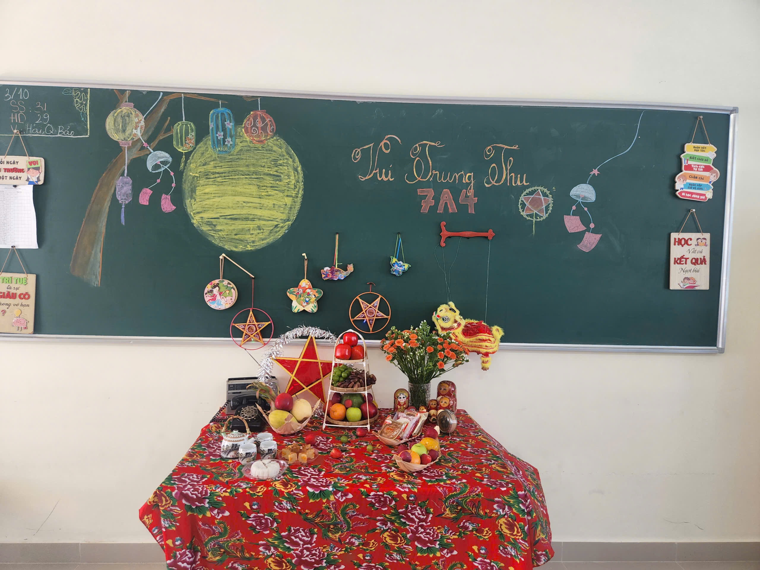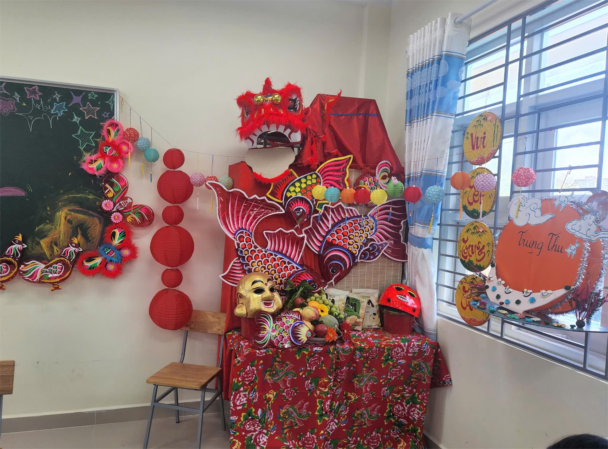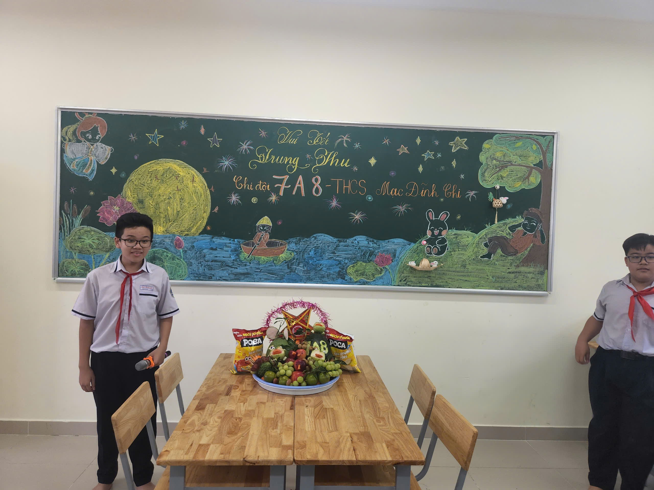 Sáng ngày 06/10/2025, sân trường và các lớp học của THCS Mạc Đĩnh Chi rộn ràng như một khu hội chợ thu nhỏ. Từng góc lớp được khoác lên chiếc áo mới đầy màu sắc – nơi thì lung linh đèn lồng tái chế, nơi lại rực rỡ mâm cỗ trung thu đậm đà hương vị truyền thống. Tất cả đều được chính tay các bạn học sinh sáng tạo, trang trí và thuyết trình với niềm tự hào của “người nghệ nhân nhí”